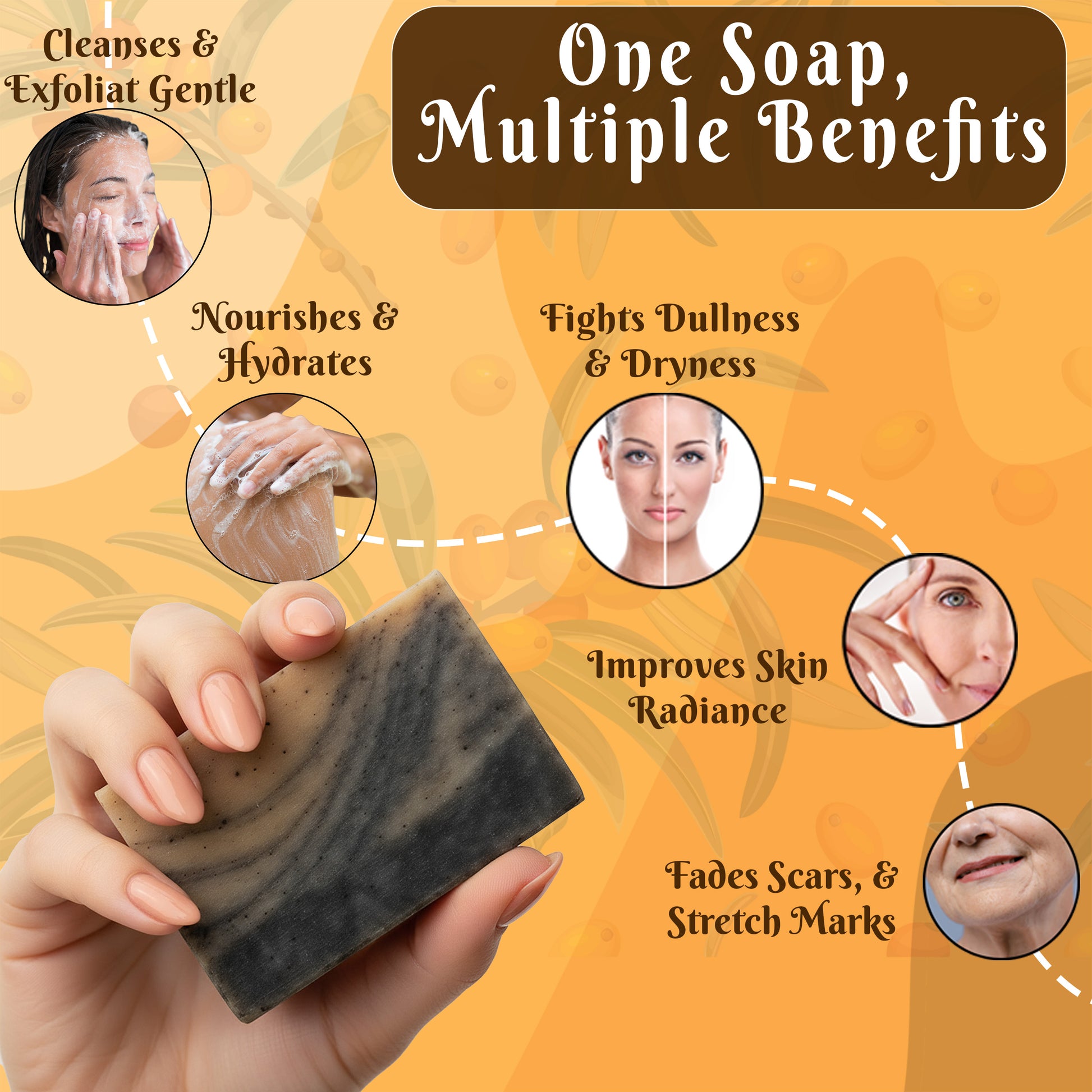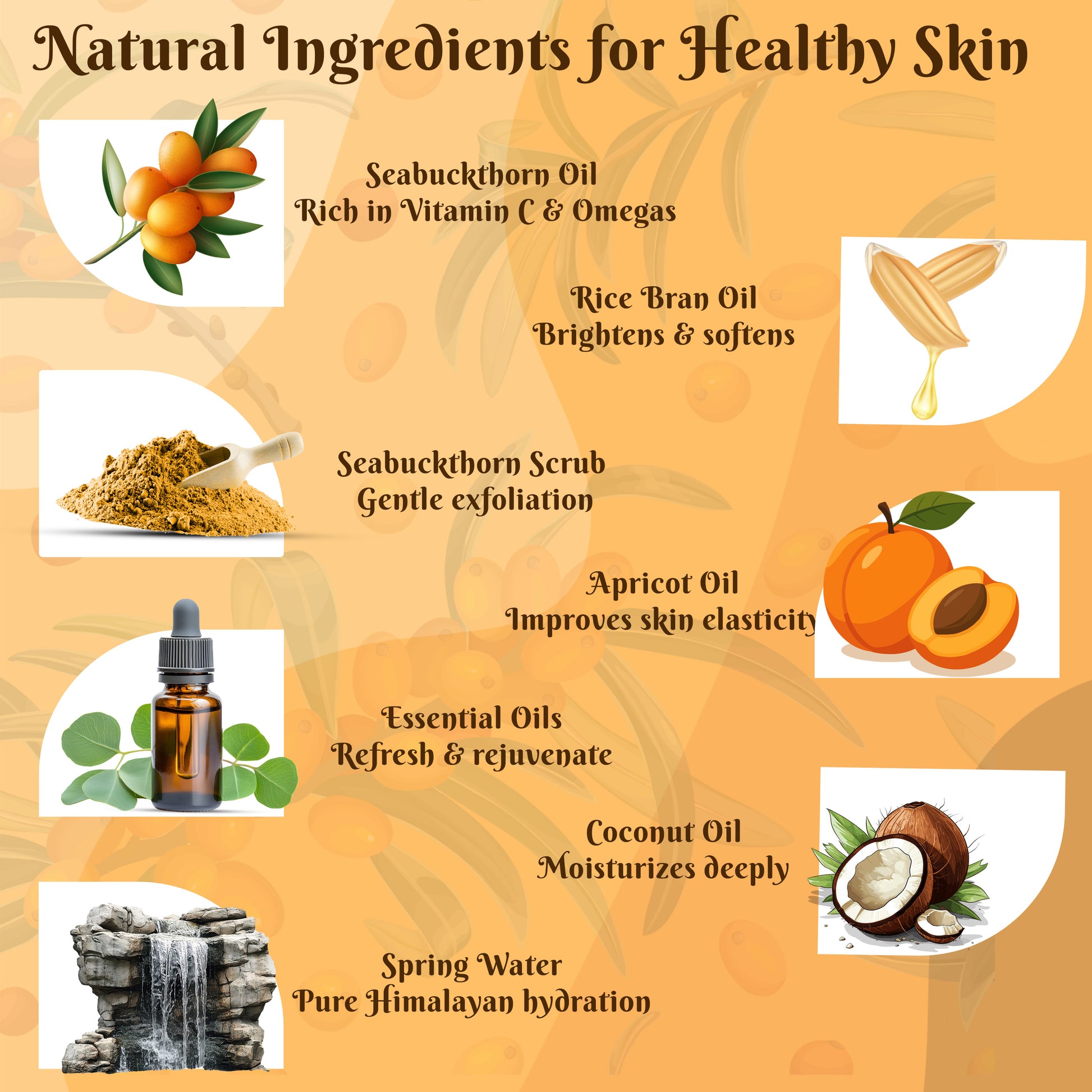 Experience the goodness of Himalayan botanicals with HimShuddhi Handmade Seabuckthorn Soap — a luxurious blend of nature’s most nourishing oils and herbs. Crafted through the traditional cold process method, this natural soap retains the essential nutrients of each ingredient to gently cleanse, hydrate, and refresh your skin. Enriched with Sea Buckthorn Oil, known for its rich content of Vitamin C and Omegas, this bar helps rejuvenate dull skin and restore its natural glow. Coconut Oil deeply moisturizes and softens, while Apricot Oil enhances elasticity and smoothness. The inclusion of Rice Bran Oil adds brightness and radiance, making every wash a refreshing ritual. With the subtle touch of essential oils and Himalayan spring water, this handcrafted soap provides a pure, refreshing bathing experience suitable for all skin types — men and women alike. Free from parabens, sulfates, and synthetic fragrances, it’s your skin’s daily touch of Ayurveda and nature.