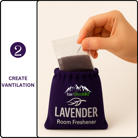 Himalayan lavender Sachet that brings the soul of the mountains into your daily life. Our founders revive century-old recipes recorded in their grandfather’s healer’s notebook, hand-foraging Damascena lavender at the peak of bloom under Himalayan sun and moonlight. Once gathered, each petal is gently sun-dried, then stone-milled into an ultra-fine powder that holds the pure, unadulterated fragrance of the mountain lavender . Unlike chemical sprays or plug-in fresheners that bombard you with artificial scents, this sachet diffuses a subtle, long-lasting aroma that soothes the mind, uplifts the spirit, and invites moments of mindful calm. Whether tucked among linen in your wardrobe, placed on a bedside table, or clipped inside your car, the lavender sachet transforms any space into a serene retreat. And when its fragrance gently fades, simply refill the velvet pouch from the resealable inner bag—no need to replace a single component. This refillable design reflects our zero-waste commitment, so you can enjoy luxury without compromise. Every purchase supports Himalayan harvesting communities and preserves fragile alpine ecosystems. As you inhale the soft blush of lavender , know you’re carrying forward our grandfather’s promise: to protect the purity of the mountains and share it with the world.